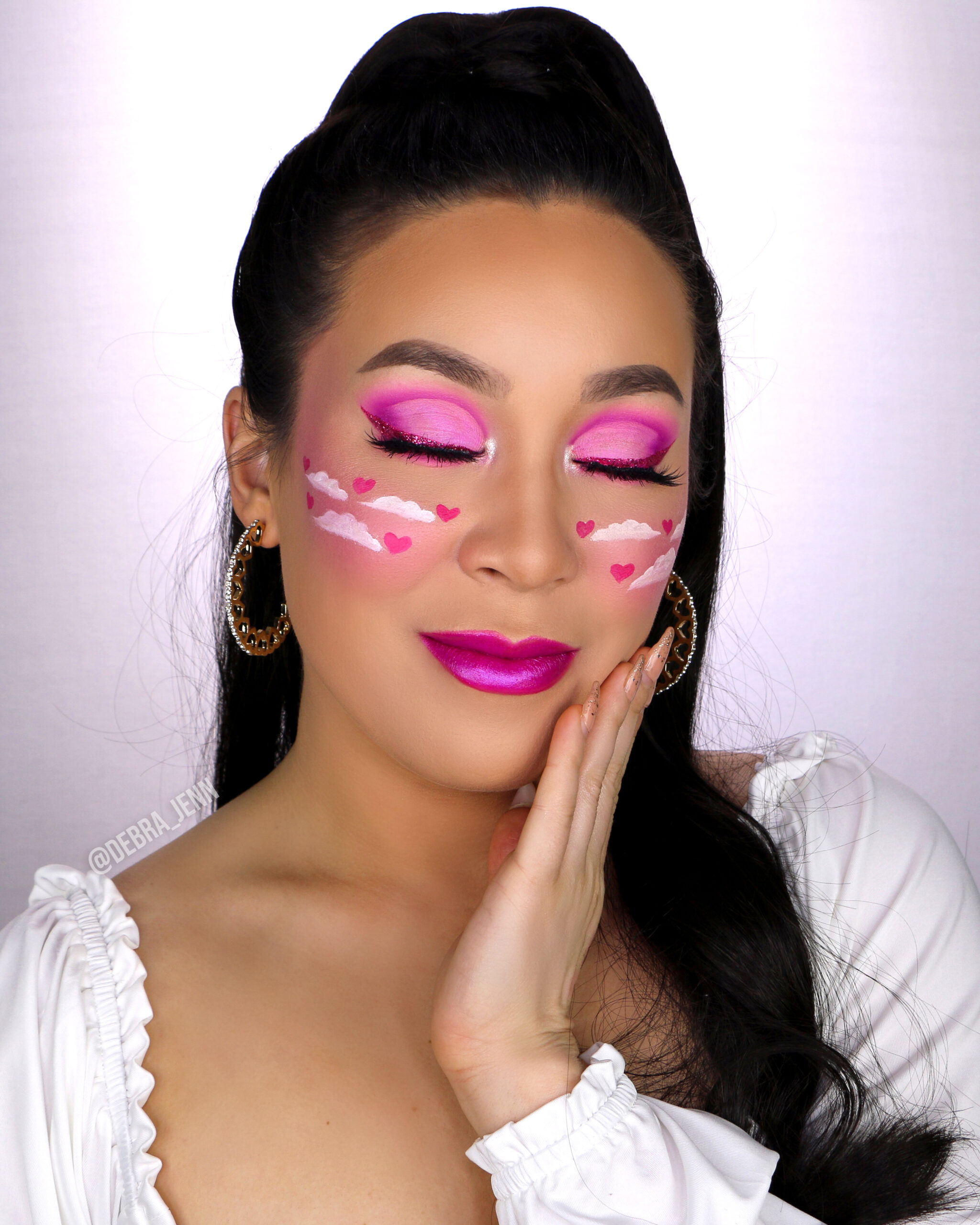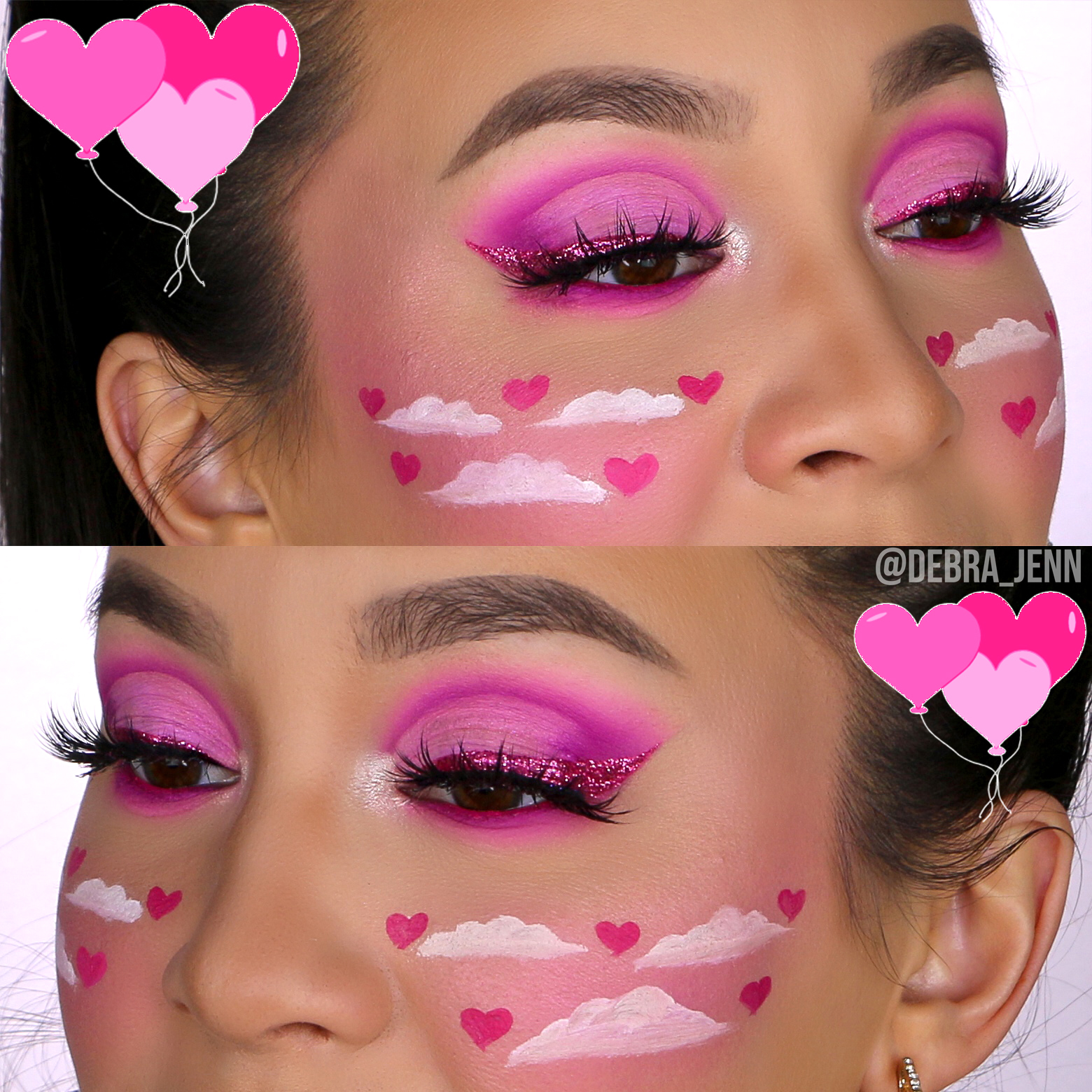 1. Pink Eye Makeup with Hearts & Clouds